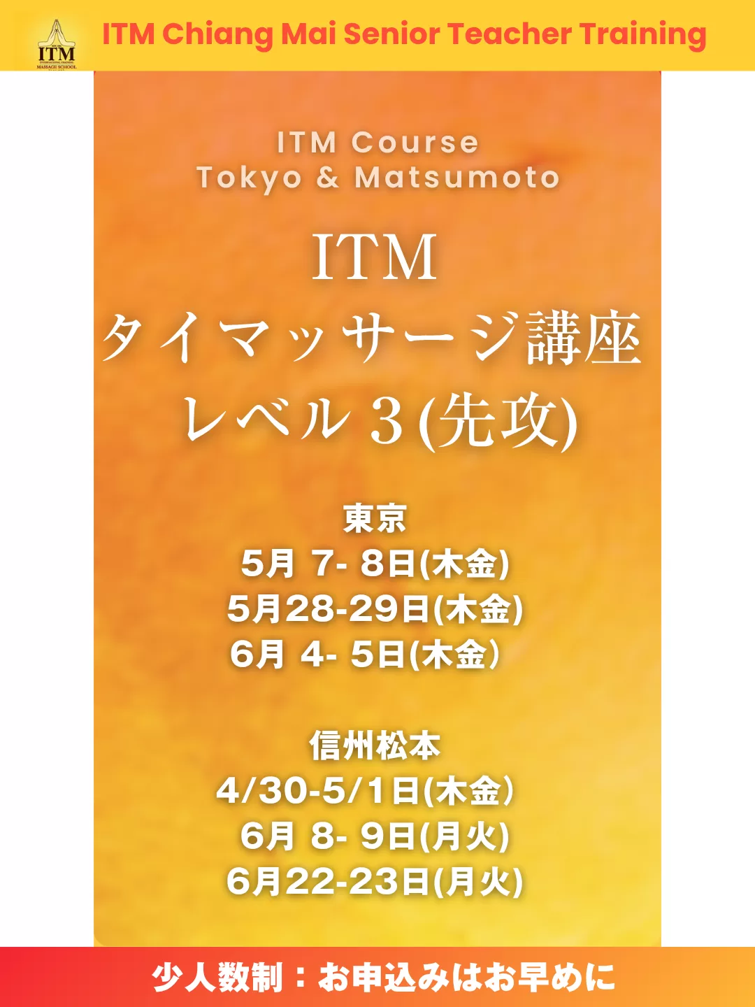 2026年、タイマッサージを学び始めて21年目にITMで学び直したからこそ、そう実感しています。