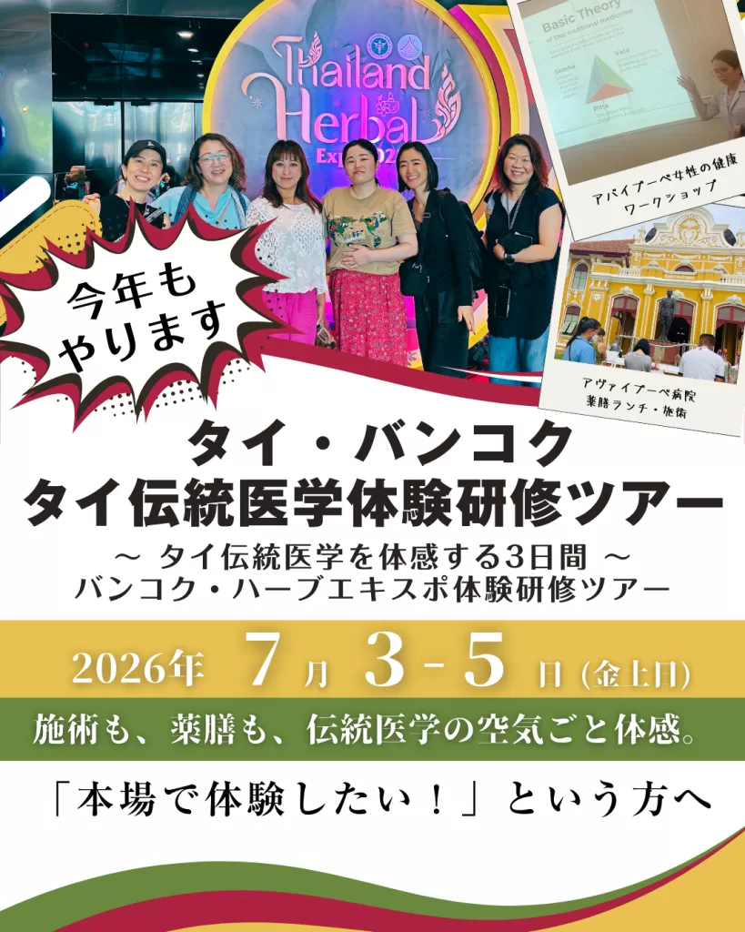 2026年7月3-5日(金土日)タイバンコク:伝統医学体験研修ツアー~ハーブエキスポ・アバイブーベ病院~