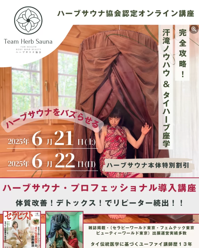 2025年6月21-22日(土日)オンライン:6月ハーブサウナ:プロフェッショナルサロン導入講座