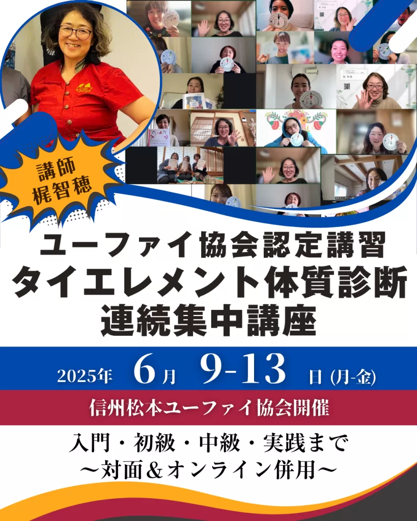2025年6月9-13日(月-金)信州松本&オンライン:タイエレメント体質診断 集中講座