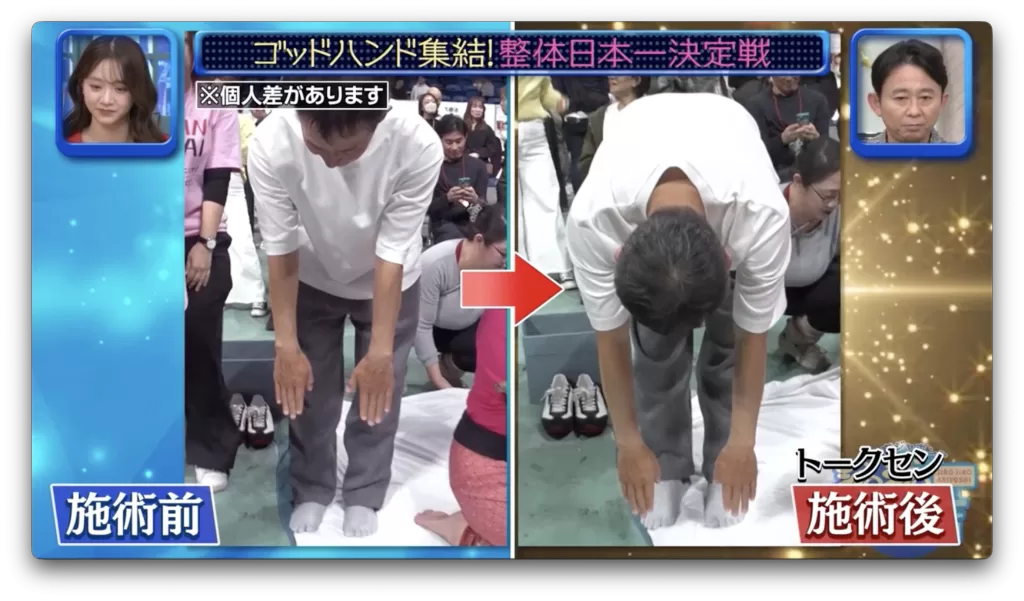 2026年1月、TBS系全国放送「ジロジロ有吉」にて、2025年12月開催【整体日本一決定戦】の模様が2週にわたり放送されました。